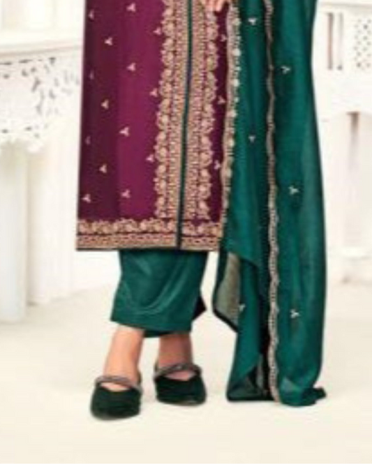 Wine Salwar In Embroidered Vichitra Silk For USA