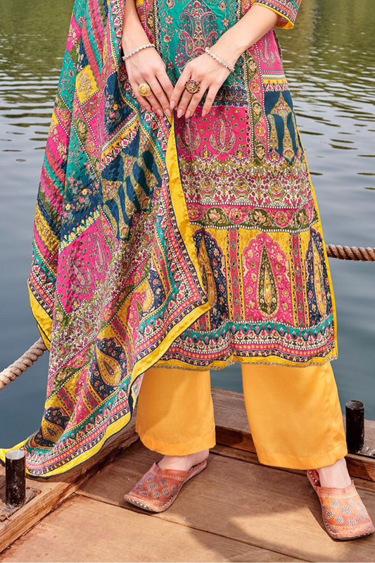 Elegant Teal Salwar With Digital Print For Canada
