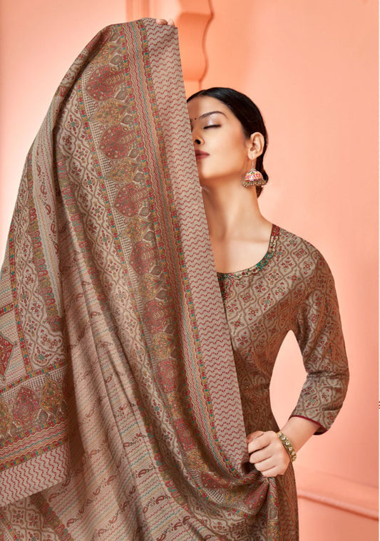 Light brown silk digital printed readymade stylish salwar kameez outfit