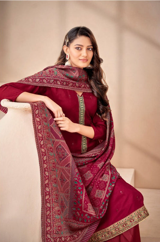 Indian traditional designer satin coding embroidery salwar kameez suit