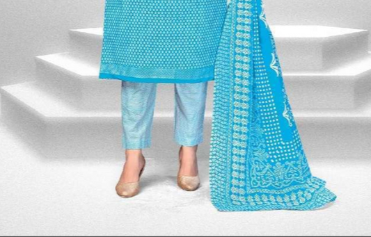 Indian Cotton Designer Printed Shalwar Kameez Suits in Blue Color