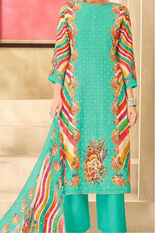 Latest Designer Pure Maslin Digital Printed Embroidery Salwar Suit