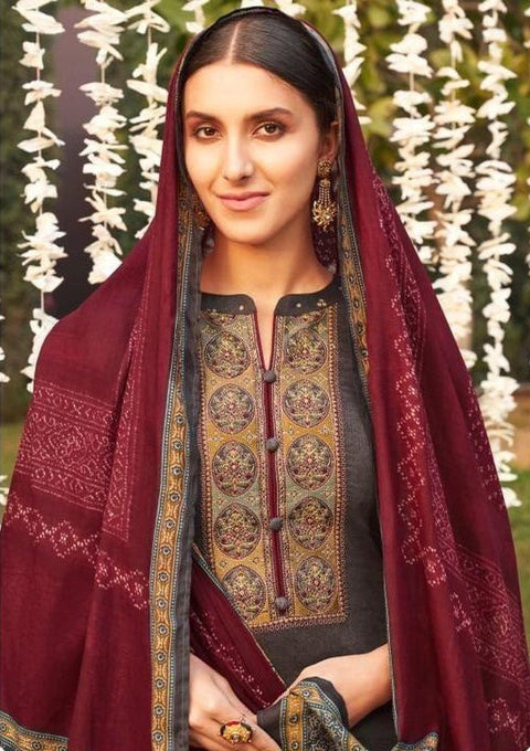 Gray designer cotton fabric embroidery work salwar kameez with dupatta