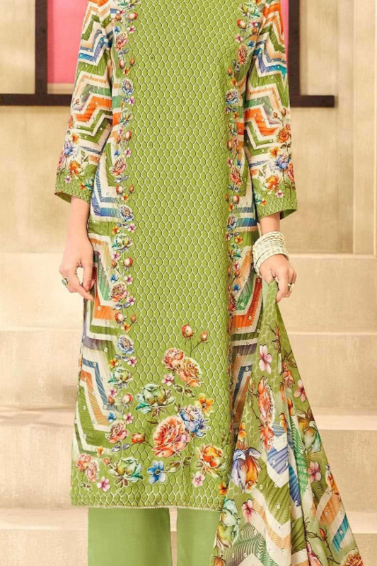 Green Floral Print Cotton Salwar Kameez for Summer wear Dress