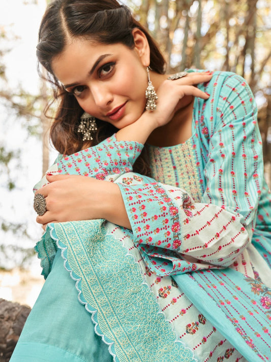 Pakistani Blue Designer Salwar Suit with Lawn Cotton Dupatta