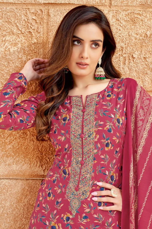 Mulberry Pink Cotton Salwar Kameez Dupatta For Casual Wear For Her