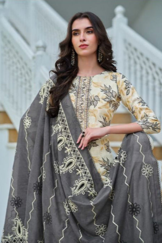 Pakistani Designer Regular Wear Outfit With Cotton Mal Mal Dupatta