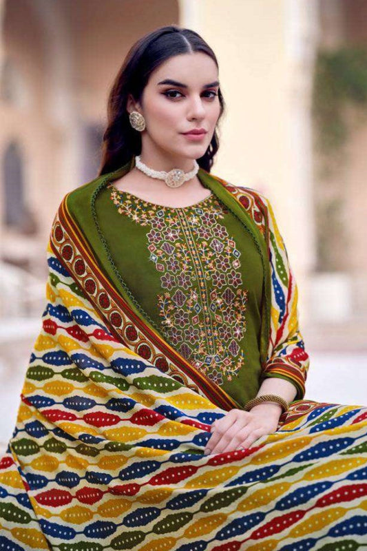 Perfect for a Mehndi and Everyday Wear Olive Green color shalwar kameez