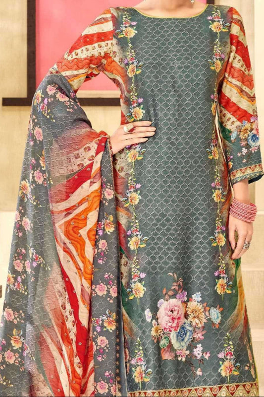 Pakistani designer embroidery and digital printed salwar kameez suit