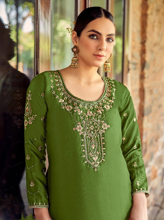 Ramdan Special Dark Green Color Designer Embroidery Work Salwar Kamiz