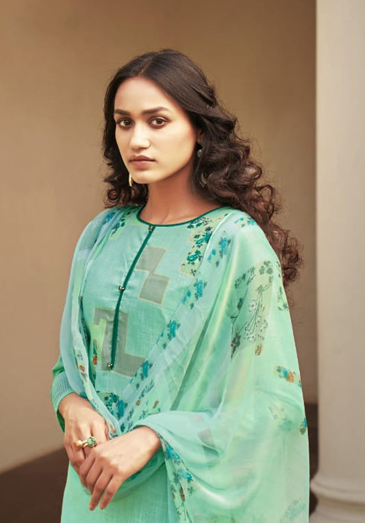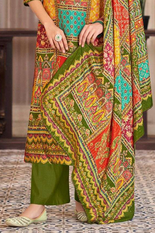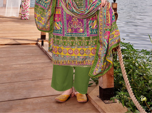 Stunning green designer reyon maslin printed salwar kameez dupatta