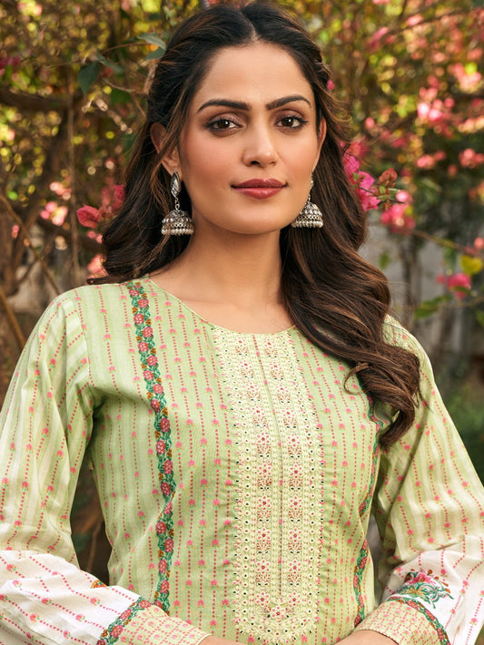 Stunning Green Color Printed Shalwar Kameez Suit For Casual Wear