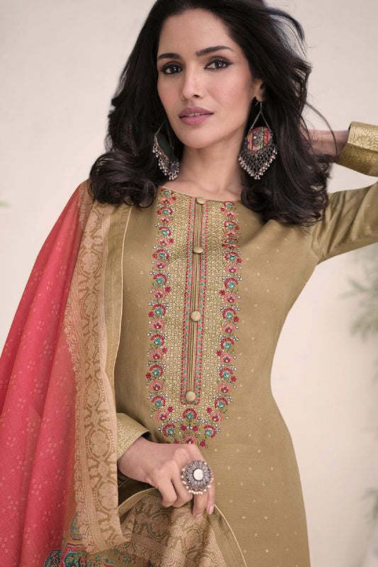 Stitched designer ready-to-wear green jacquard salwar kameez suit