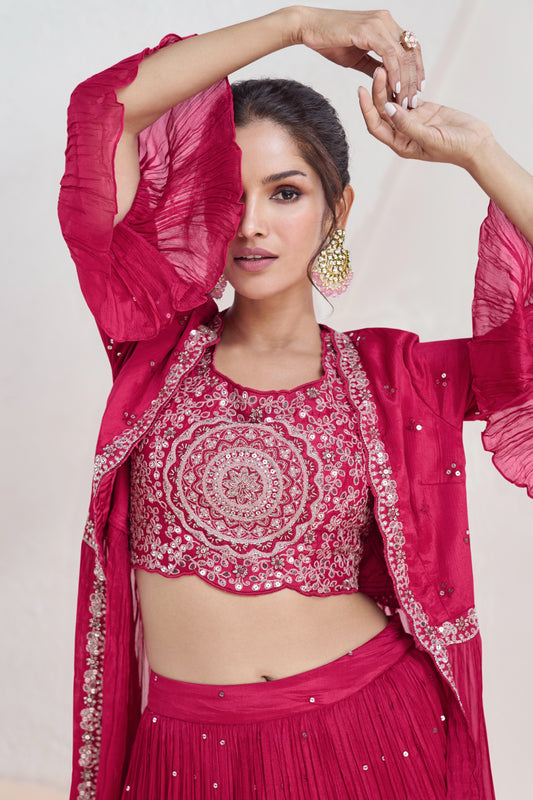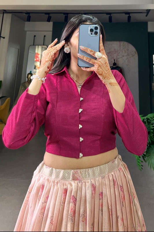 Pink Lehenga With Western Styling and Fine Embroidery Work
