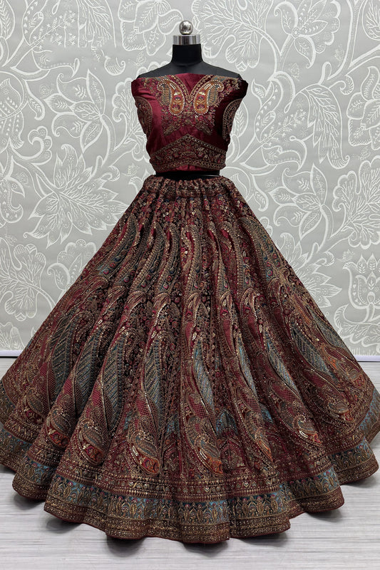 Bridal Lehenga For Wedding In Purple Tussar Silk