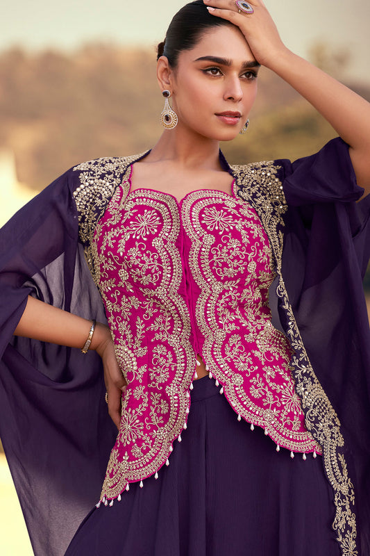Reception Ethnic Party Wear Chinon Silk Palazzo With Embroidery Shrug