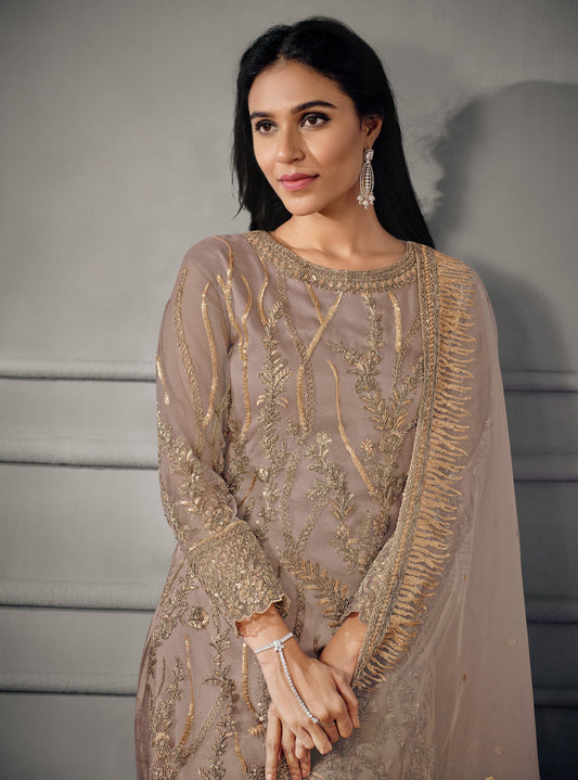 Indian Plus Size Clothing Brown Salwar Kameez With Dupatta