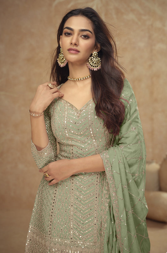 Premium Green Color Salwar Kameez Palazzo Suit For Special Occasion