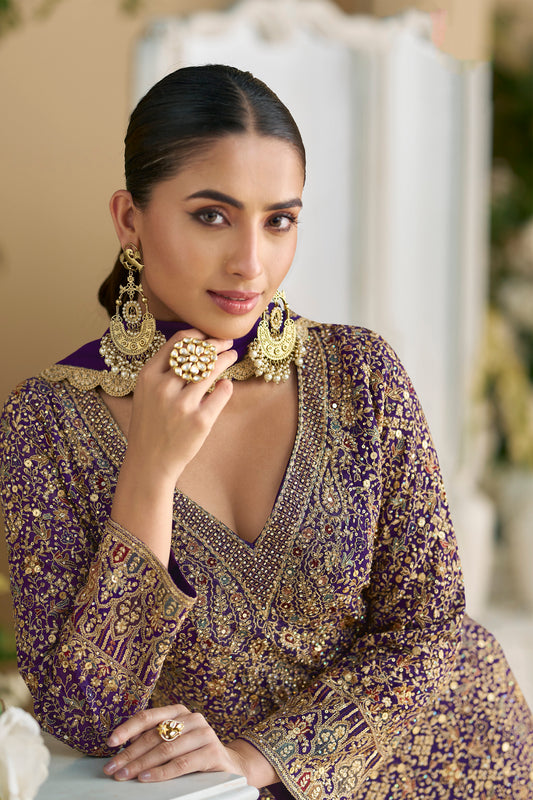 Purple color Party Wear Beautiful Shalwar Kameez palazzo suits