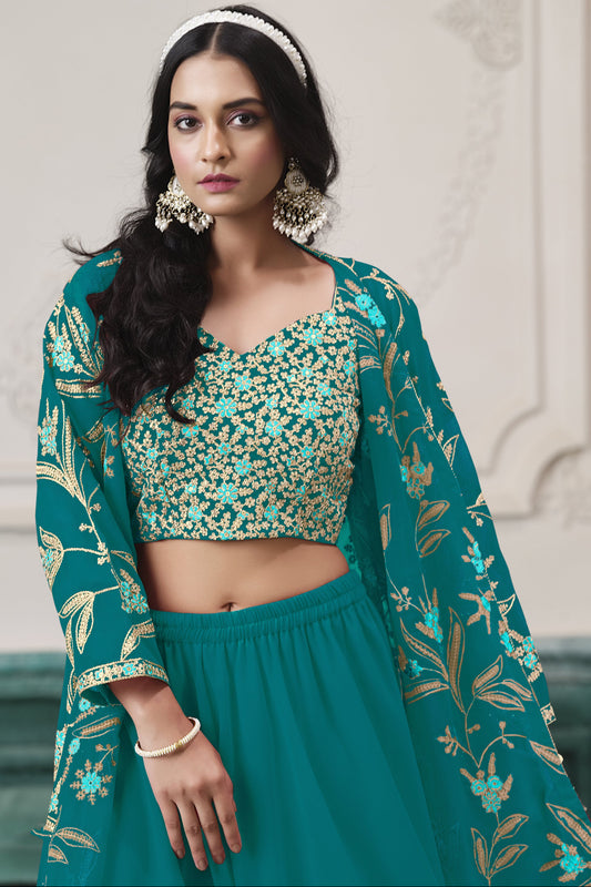 Teal Blue Georgette Palazzo With Shrug For Sangeet