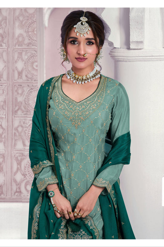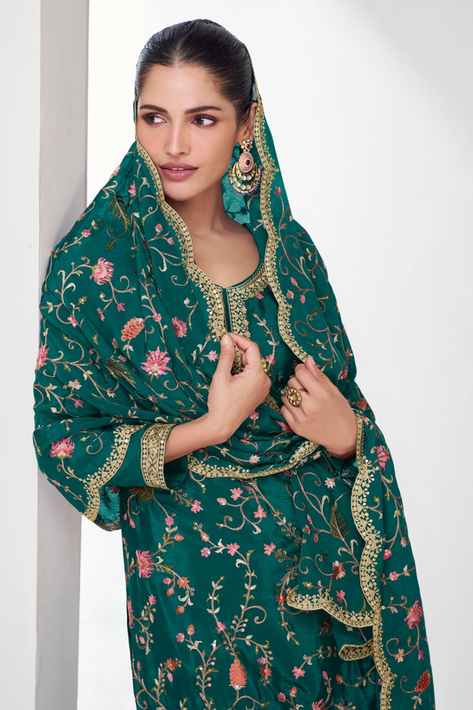 Teal Green Embroidered Palazzo Suit for Women Ethnic Style
