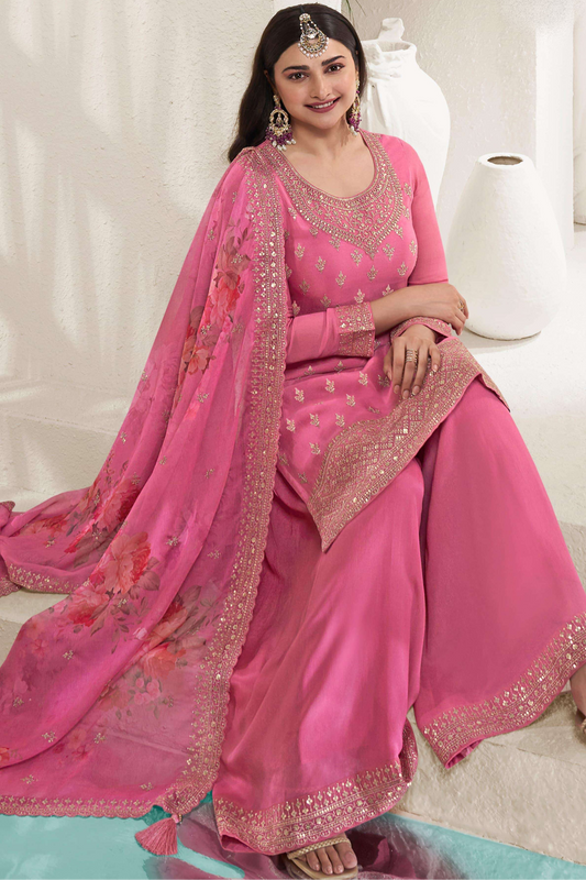 Pakistani Chinon Silk Palazzo Suit For Wedding Function