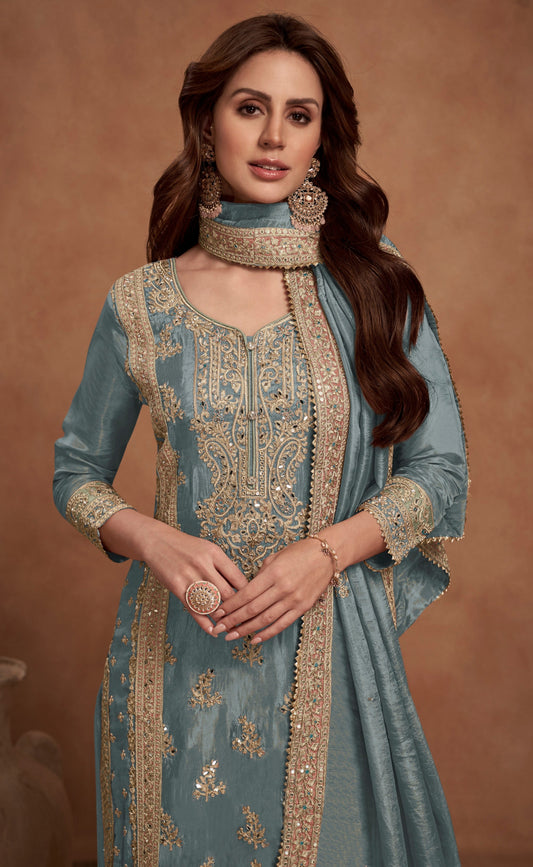 Sky Blue Designer Palazzo Suit – Wedding Function Wear