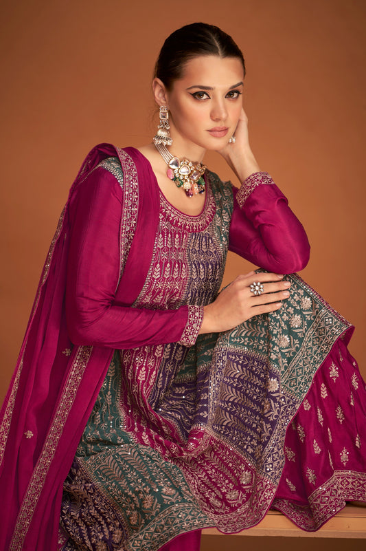 Indian Wedding Chinon Palazzo Suit For Reception Wear