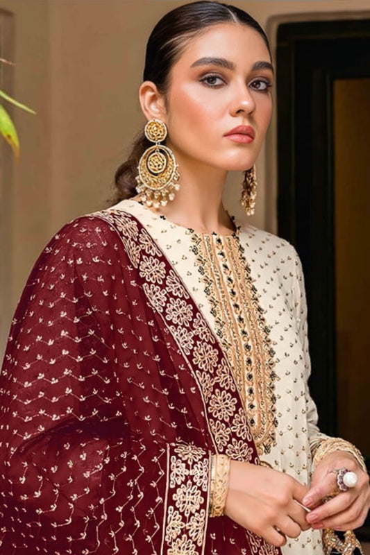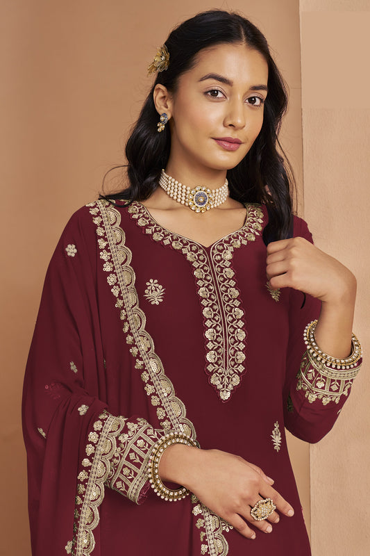 Eid Special Salwar Kameez Embroidery Worked Wine Palazzo Dress
