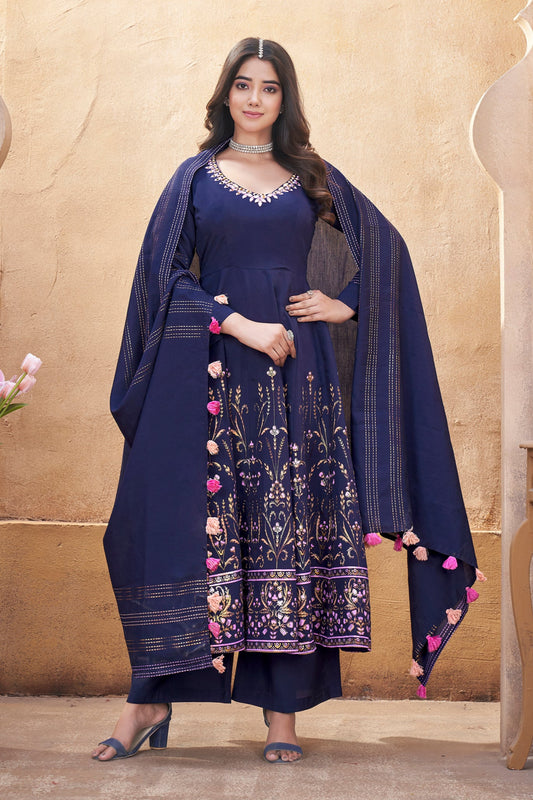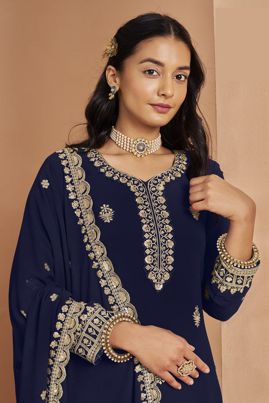Bollywood Style Navy Blue Embroidered Palazzo Dress for Reception