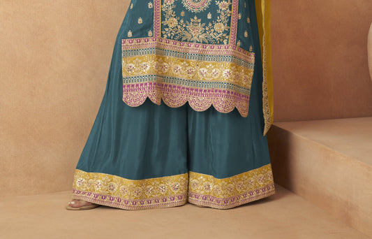 Indian Style Teal Ready-to-Wear Palazzo Dress with Heavy Chinon Dupatta