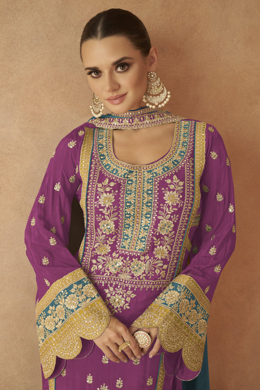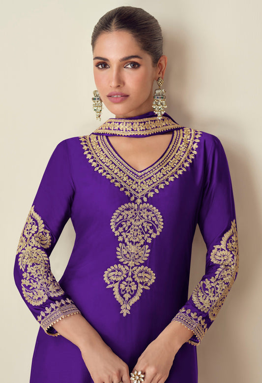 Exclusive Dark Purple Salwar Kameez Palazzo for Weddings and Events