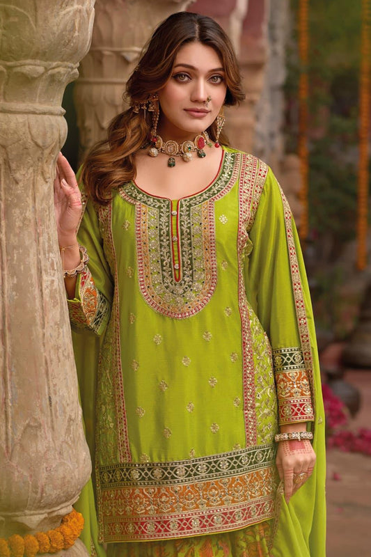 Buy Lime Green Indian Palazzo Suit for Wedding Online USA