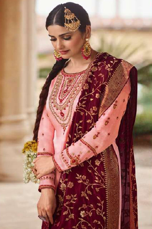 Exclusive Pink Jacquard Silk Palazzo For Wedding Reception