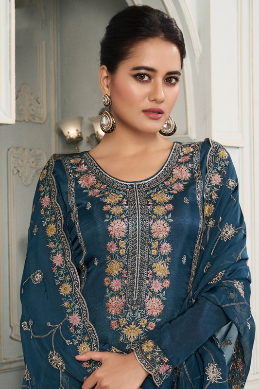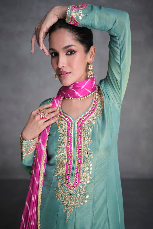 Salwar Suit For Marriage Party In Dusty Teal Silk