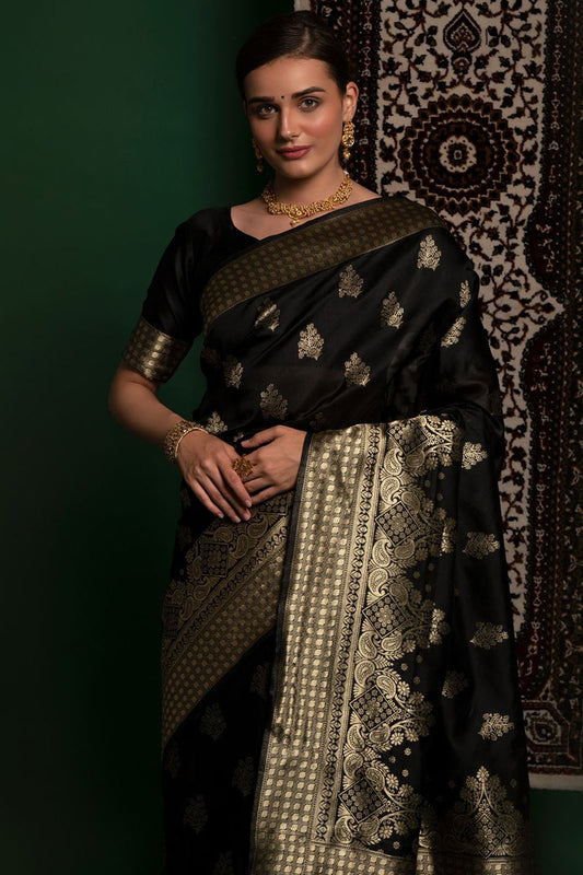 Black Woven Zari Work Saree for Indian & Pakistani Wedding Functions