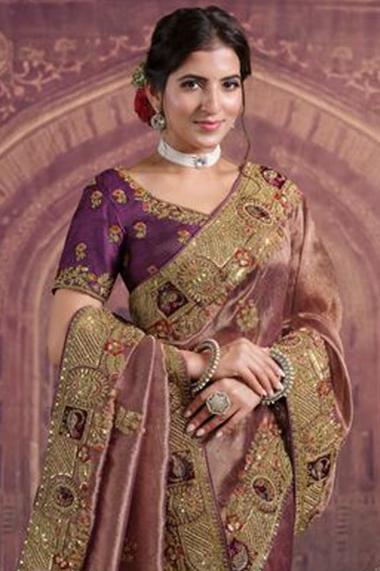 Purple Color Floral Printed Designer Organza Saree For Ethnic Wear