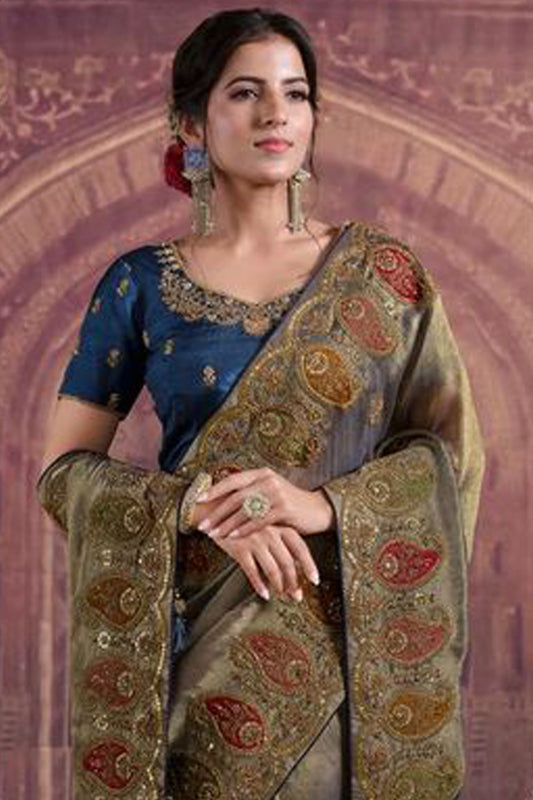 Elegant Embroidery Saree With Beautiful Blouse For Reception Night