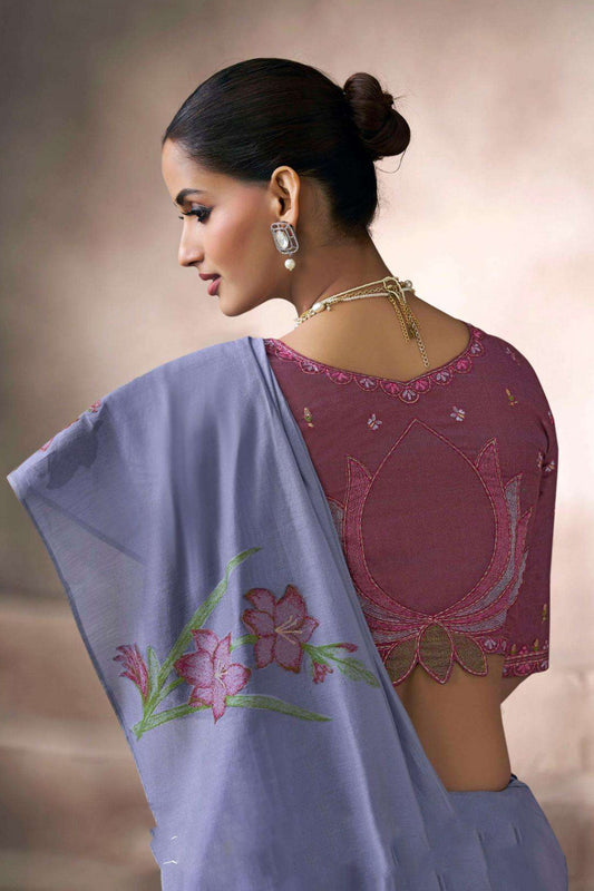 Stylish Fancy Embroidery Worked Beautiful Saree With Blouse