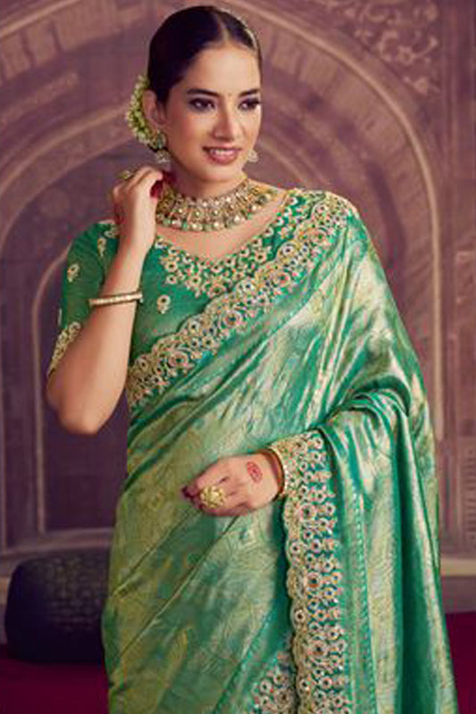 Sea Green Designer Silk Fabric Women's Wear Saree