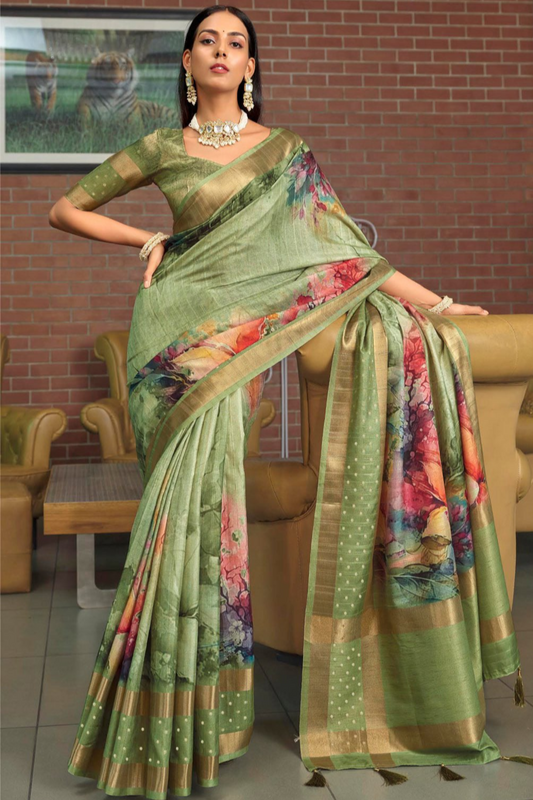 Gorgeous Designer Flower Print Silk Saree for Wedding Function