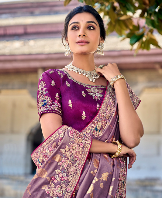 Lavender Viscose Saree with Embroidered Pallu & Silk Blouse for Events