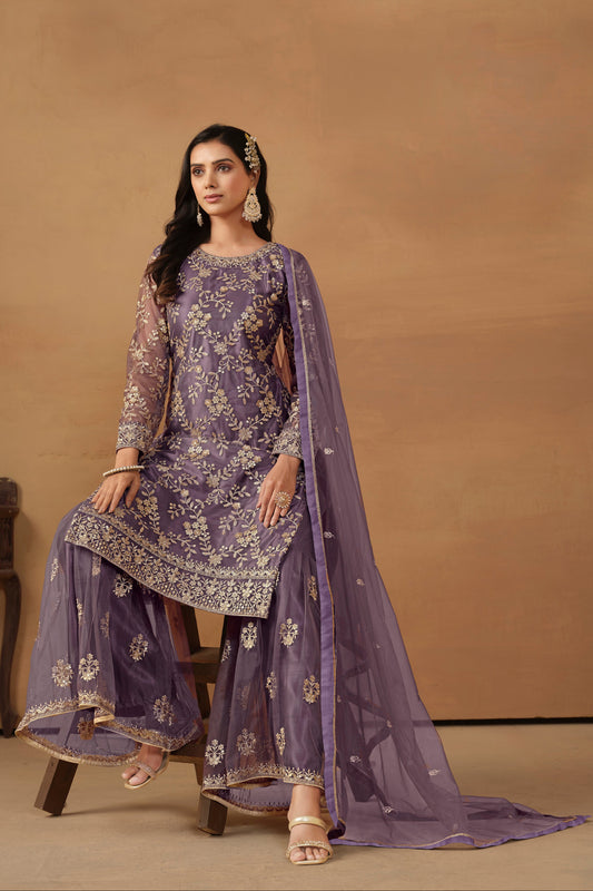 Levender Sharara Suits Crafted In Net For Wedding Moments