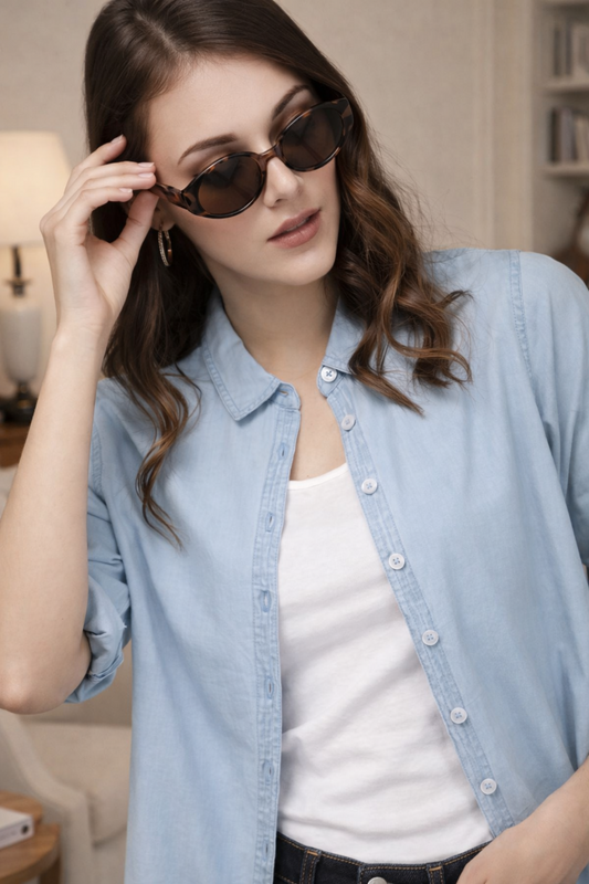 Oversized Blue Shirt for Women in Soft Cotton Fabric