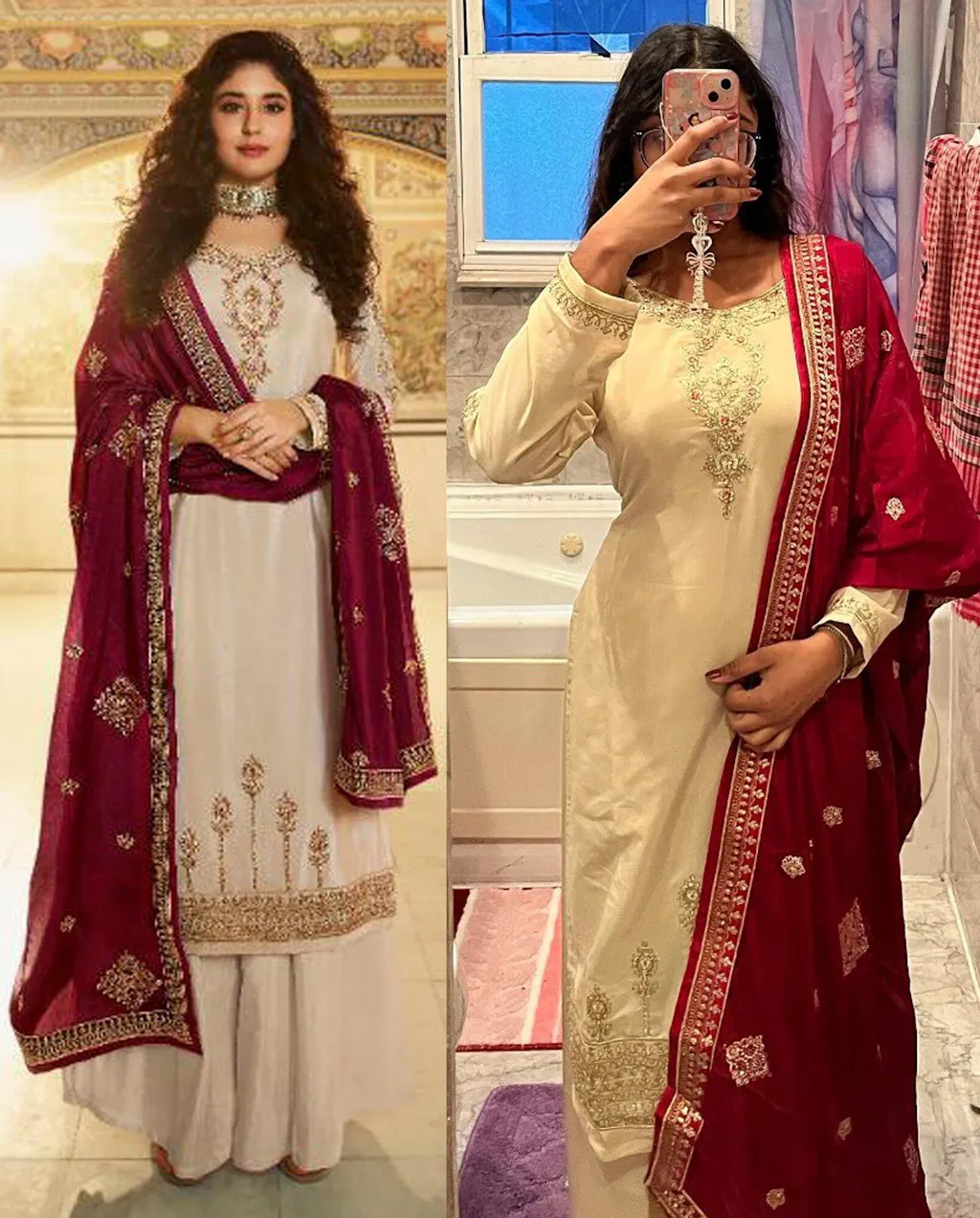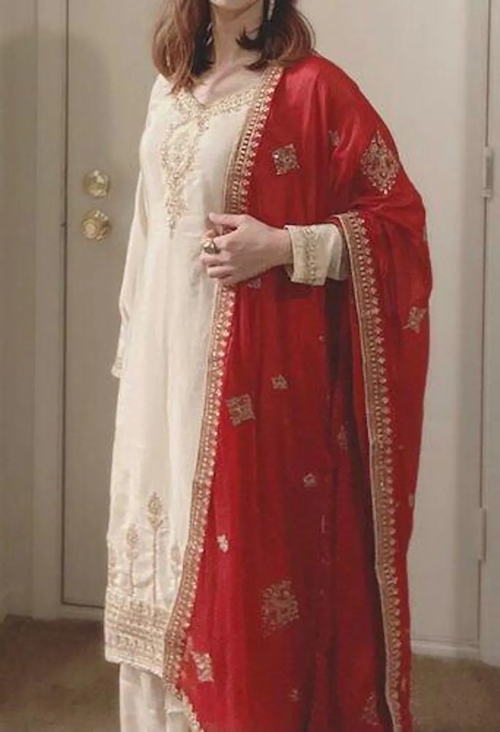 | Set Includes | Embroidered salwar kameez with palazzo pants and matching dupatta |