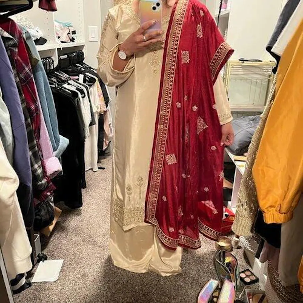 Ethnic Beige Embroidered with beautiful embroidery and dupatta - the perfect choice for weddings, parties, and special celebrations. This stunning beige salwar kameez palazzo set showcases intricate embroidery work and beautiful detailing that captures the essence of traditional Pakistani and Indian craftsmanship. The premium fabric in elegant beige drapes beautifully, creating a flowing silhouette that flatters every figure while ensuring all-day comfort during long celebrations. This beautiful piece of ethnic wear features stunning embellishments that create a captivating look. The flowing palazzo paired with a matching dupatta and embroidered kameez offers the perfect blend of traditional charm and modern designer style. Whether you're attending Pakistani and Indian weddings, bridal ceremonies, reception parties, roka celebrations, nikah events, Eid festivities, Diwali celebrations, or any special occasion, this readymade stitched Ethnic Beige Embroidered ensures you make a memorable impression with grace at every event.